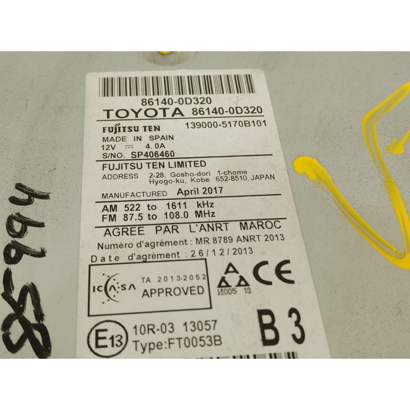 Recambio de sistema navegacion gps para toyota yaris active referencia OEM IAM 861400D320