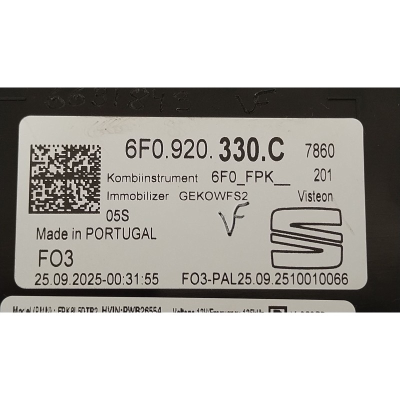 Recambio de cuadro instrumentos para seat arona (kj7, kjp) 1.0 tgi referencia OEM IAM 6F0920330C